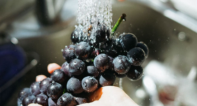Wash and soak in a light solution of Triplus Fruit & Vegetable Wash and water. Rinse repeatedly.